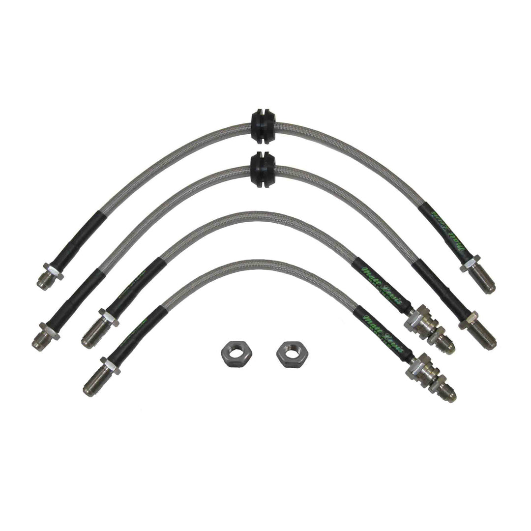 Rüsten Sie Ihre Bremsen mit unseren hochwertigen Edelstahlschläuchen und -armaturen auf, die als direkter Ersatz für Original-Gummischläuche konzipiert sind. Im Gegensatz zu herkömmlichen Gummioptionen bestehen unsere Schläuche vollständig aus Edelstahl und bieten so umfassenden Korrosionsschutz. Dank höherer Druckfestigkeit und überlegener Hitzebeständigkeit sind diese Schläuche für extremere Bedingungen ausgelegt. Ob bei Straßenschmutz oder rauen Umgebungen – sie bieten eine höhere Haltbarkeit und Langlebigkeit und sind somit die ideale Wahl für anspruchsvolle Anwendungen.