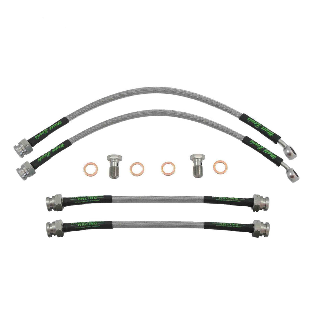 Rüsten Sie Ihre Bremsen mit unseren hochwertigen Edelstahlschläuchen und -armaturen auf, die als direkter Ersatz für Original-Gummischläuche konzipiert sind. Im Gegensatz zu herkömmlichen Gummioptionen bestehen unsere Schläuche vollständig aus Edelstahl und bieten so umfassenden Korrosionsschutz. Dank höherer Druckfestigkeit und überlegener Hitzebeständigkeit sind diese Schläuche für extremere Bedingungen ausgelegt. Ob bei Straßenschmutz oder rauen Umgebungen – sie bieten eine höhere Haltbarkeit und Langlebigkeit und sind somit die ideale Wahl für anspruchsvolle Anwendungen.
