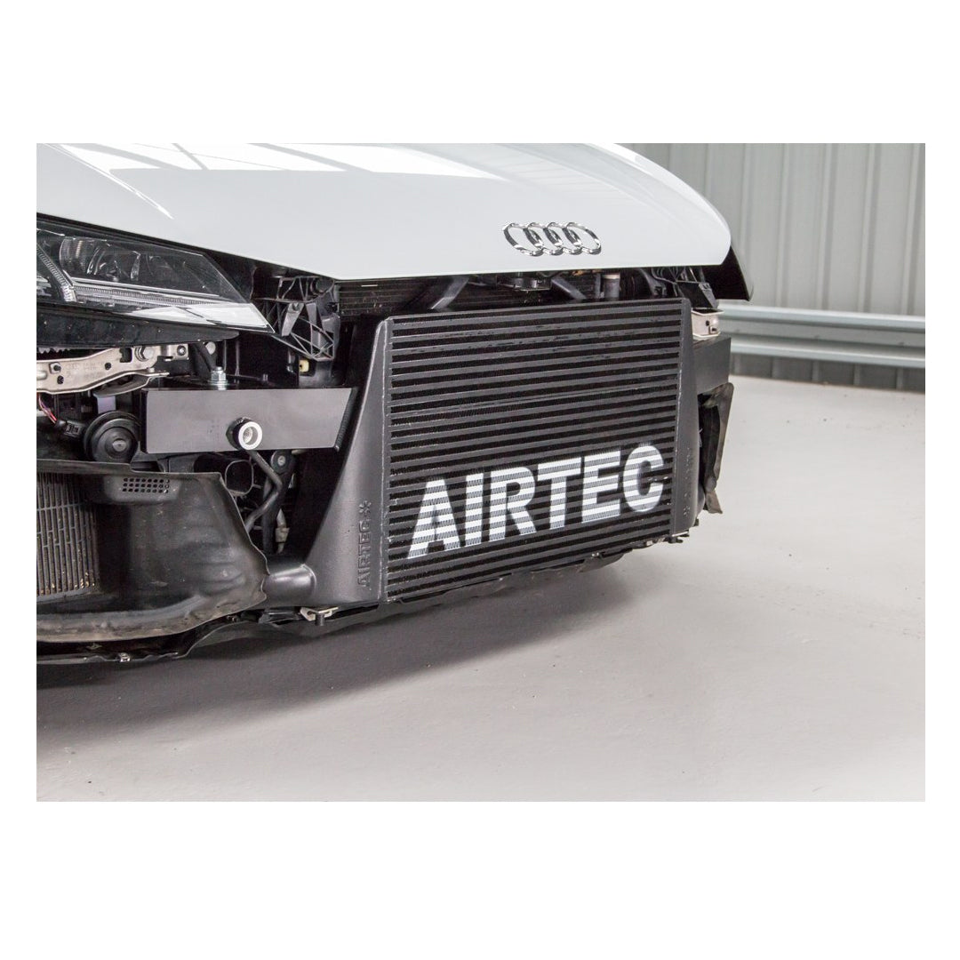 The Stage 3 front mount intercooler kit is the ultimate upgrade for modified TTRS models - giving serious cooling performance for track or fast road use. Replacing the stock crash bar with an integrated intercooler design makes full use of the front grille area while retaining the factory towing eye. The race-quality bar and plate core, 70mm inlet and outlets, and CAD-designed end tanks ensure maximum airflow and strength where it matters most.