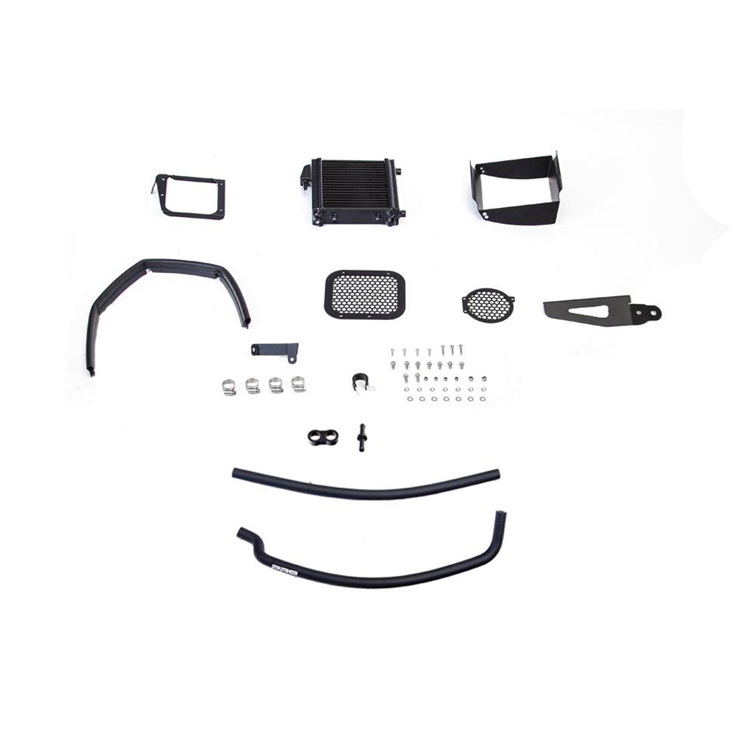 Developed and tested in-house at AIRTEC HQ in the UK, the turbo cooler fits neatly behind the fog light and uses laser-cut aluminium ducting to direct cold air through the radiator, exiting cleanly through the inner arch liner. Plumbed directly into the turbo’s coolant circuit, it reduces heat soak at the hottest point in the system, maintaining steadier temperatures for longer. The kit includes Pro Hoses silicone lines, powder-coated brackets, protective mesh shields, and all required fixtures and fittings, and can be combined with any AIRTEC intercooler or oil cooler setup for the ultimate Yaris GR cooling package.