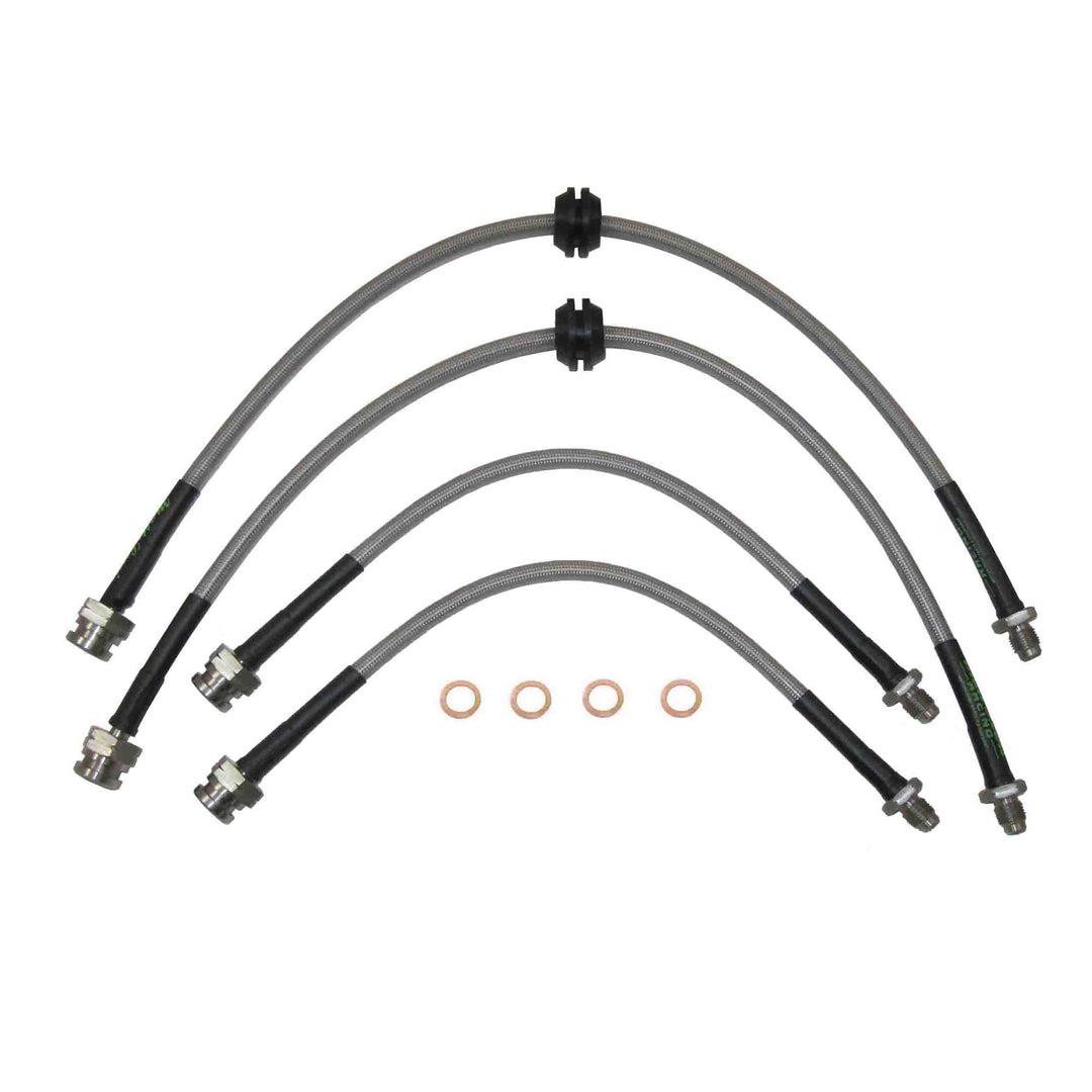 Upgrade your brakes with our premium stainless steel hoses and fittings, designed as direct replacements for OE rubber hoses. Unlike traditional rubber options, our hoses feature full stainless steel construction, ensuring complete protection against corrosion. With a higher pressure rating and superior resistance to heat, these hoses are built to handle more extreme conditions. Whether dealing with road debris or harsh environments, they offer greater durability and longevity, making them an ideal choice for demanding applications.