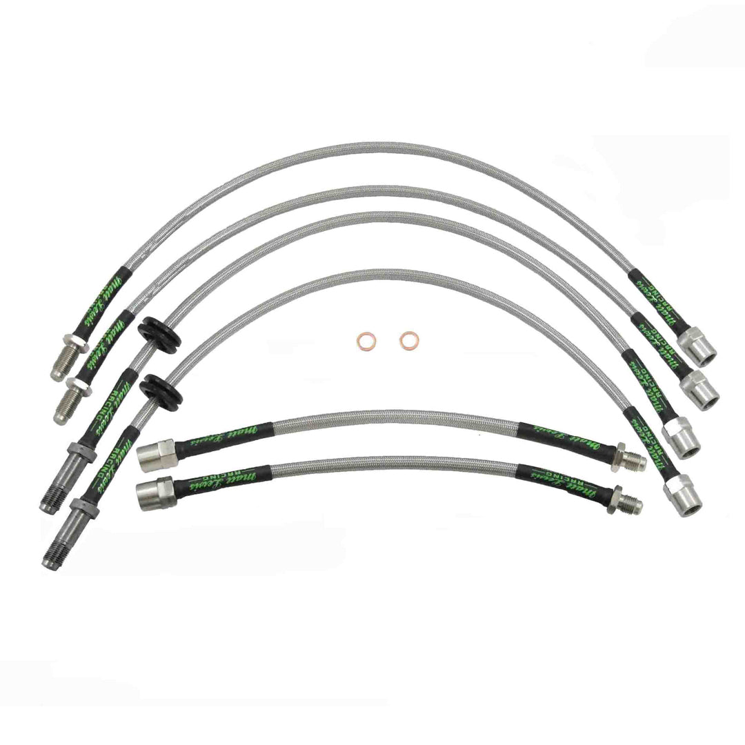 Upgrade your brakes with our premium stainless steel hoses and fittings, designed as direct replacements for OE rubber hoses. Unlike traditional rubber options, our hoses feature full stainless steel construction, ensuring complete protection against corrosion. With a higher pressure rating and superior resistance to heat, these hoses are built to handle more extreme conditions. Whether dealing with road debris or harsh environments, they offer greater durability and longevity, making them an ideal choice for demanding applications.