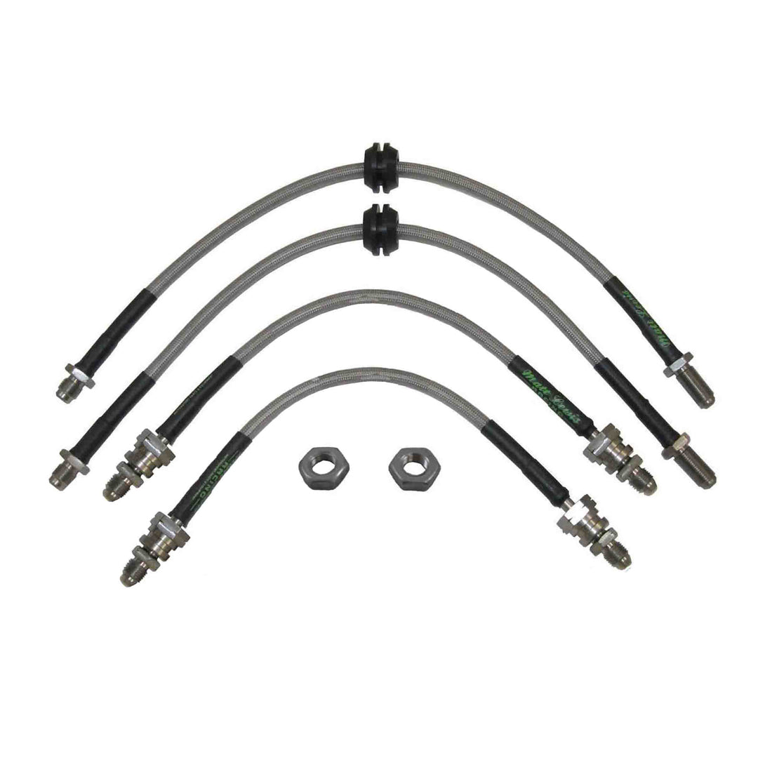Upgrade your brakes with our premium stainless steel hoses and fittings, designed as direct replacements for OE rubber hoses. Unlike traditional rubber options, our hoses feature full stainless steel construction, ensuring complete protection against corrosion. With a higher pressure rating and superior resistance to heat, these hoses are built to handle more extreme conditions. Whether dealing with road debris or harsh environments, they offer greater durability and longevity, making them an ideal choice for demanding applications.