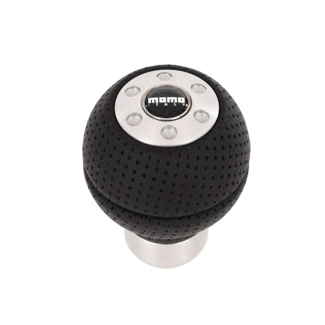 Featuring a black MOMO logo cap, its ergonomic design ensures a comfortable grip