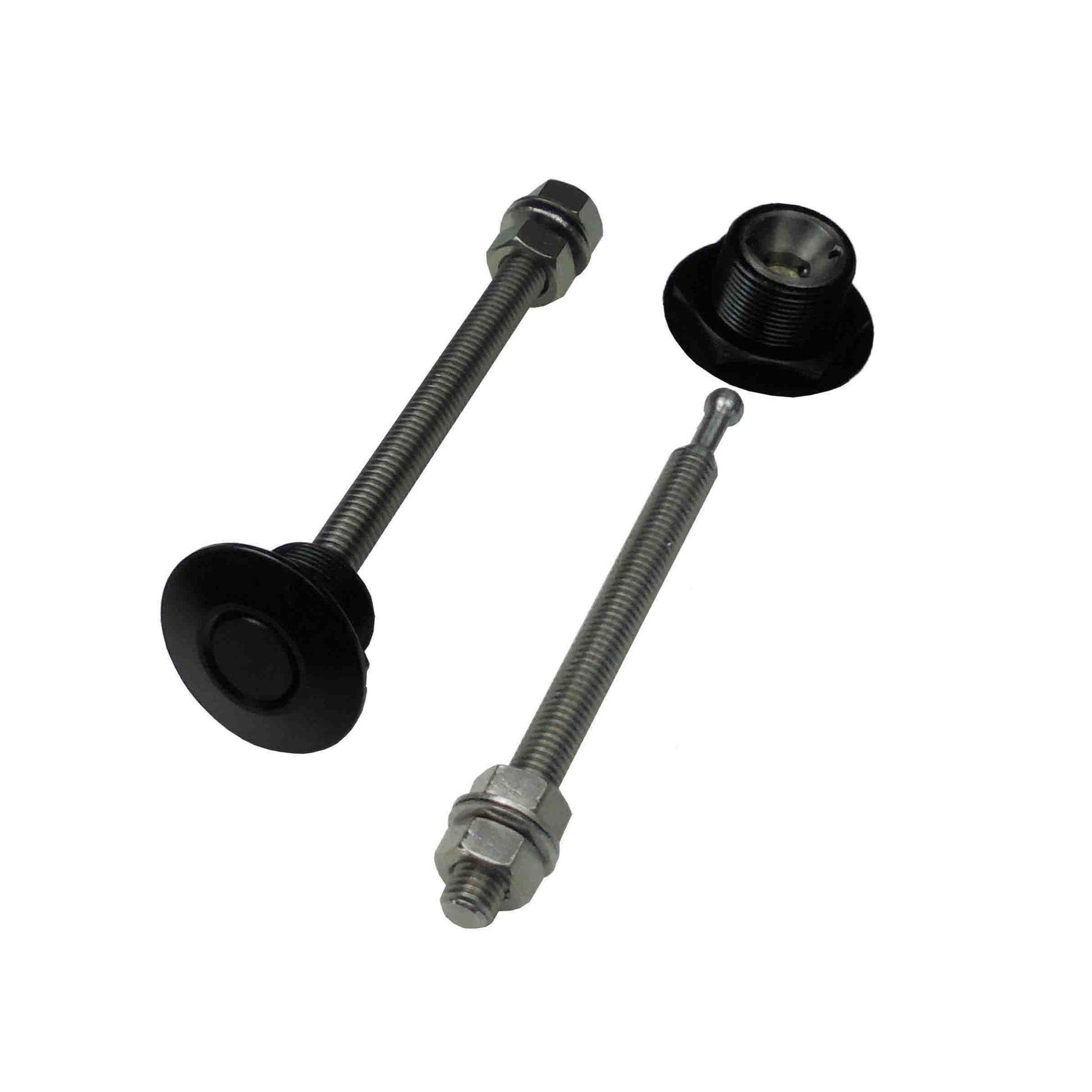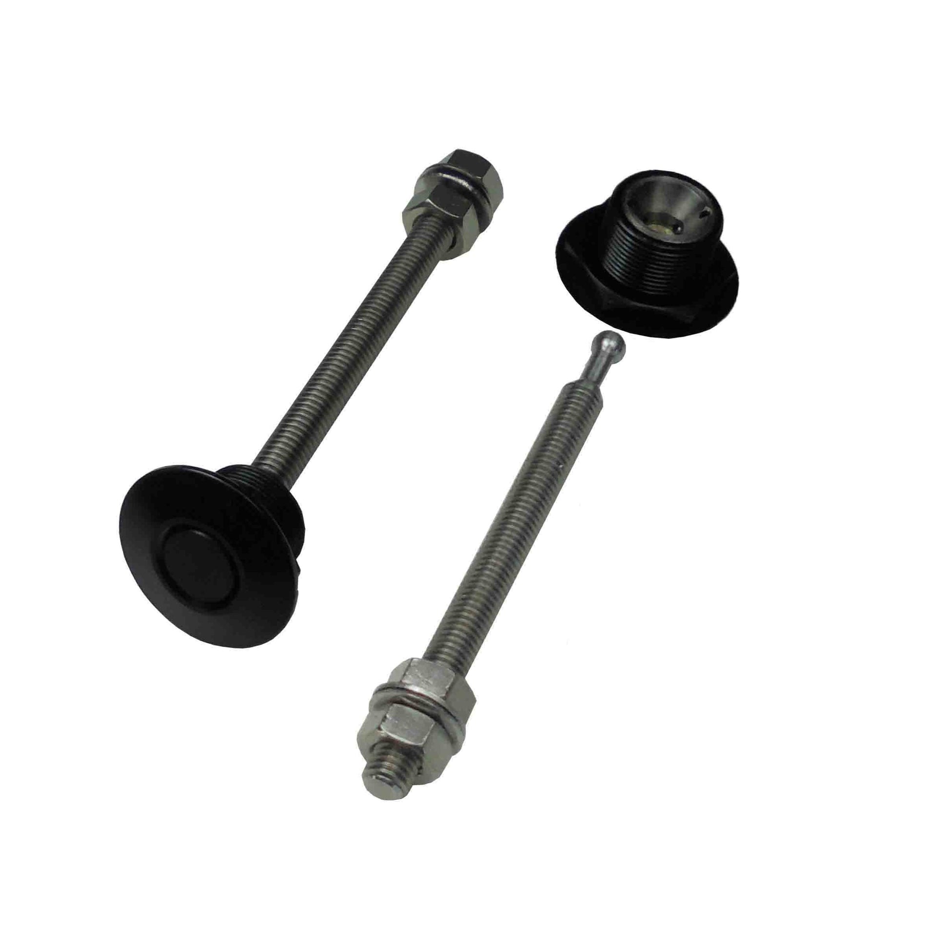 The receptacle mounts to the bonnet and aligns the pins attached to the clam panel. By closing the bonnet the receptacle automatically latches to the pins and can only be released by pressing the release button